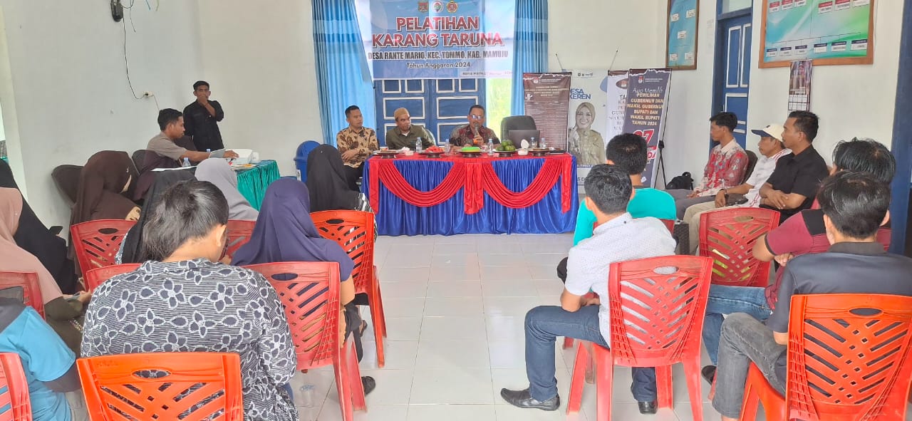 Dilaksanakan di Aula Kantor Desa Rante Mario Pada Tanggal 07 November 2024 yang dihadiri Para Narasumber Dari Berbagai Instansi Pemerintahan Diantaranya Kadis PMD Bapak Syarifuddin,S.Sos.,Msi , Kepala Bidang Pemberdayaan Masyarakat Desa Bapak Muh.Lubis,S.Ip, dan Ketua Karang Taruna Kabupaten Mamuju Bapak Khairil Amri,SH, Turut Hadir Kepala Desa Rante Mario I Komang Wisnu Wardana,S.Sos, Camat Tommo M Rudi,SH, Ketua BPD I Wayan Sukardiana,S.Pd, Ketua Karang Taruna Desa Rante Mario dan Jajaran Serta Seluruh tamu Undangan