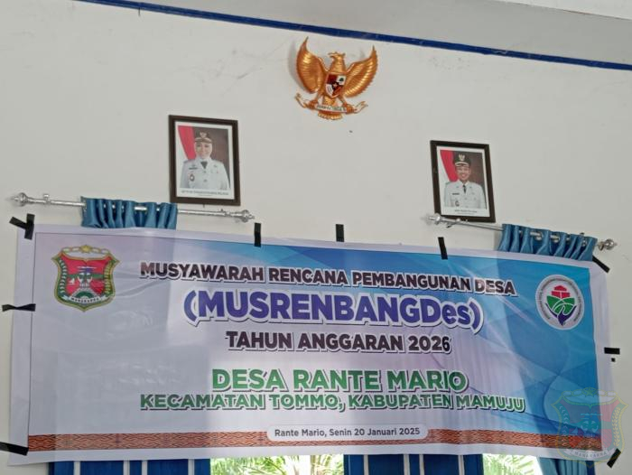 Musyawarah Perencanaan Pembangunan Desa (Musrenbangdes), Desa Rante Mario merupakan salah satu mekanisme penting dalam sistem perencanaan pembangunan, yang dilaksana pada Senin, 20 Januari 2025 di Aula Kantor Desa Rante Mario. Kegiatan Murenbang desa ini dihadiri oleh Kepala Desa Rante Mario, BPD, Pemdes Rante Mario, staff kecamatan beserta jajarannya dan masyarakat desa Rante Mario....